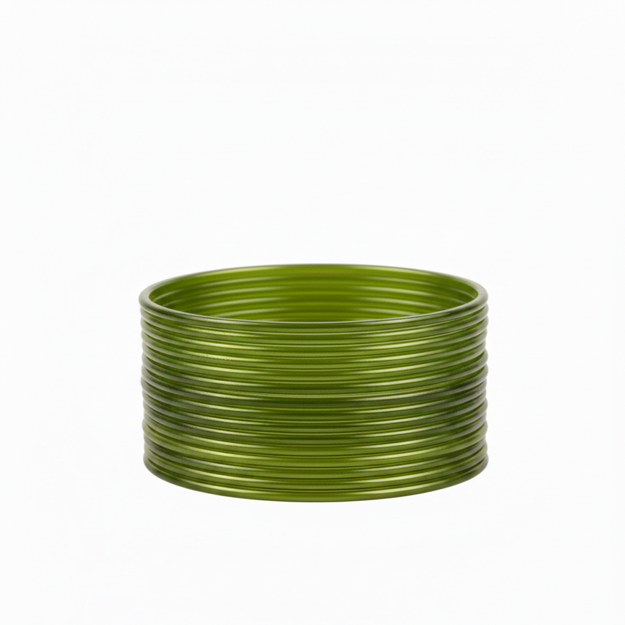 Add a touch of sophisticated, nature-inspired charm to your jewelry box with our Olive Green Plain Glass Bangles. This set of two dozen (24 pieces) offers a unique departure from traditional brights, providing a muted, earthy tone that radiates understated luxury.